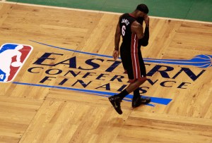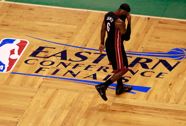 Possessing five personal fouls, James got into a battle for position with Celtics forward Mickaël Piétrus — falling to the ground — and was called for the offensive foul. He was done. The Chosen One had fouled out for the first time since 2008.