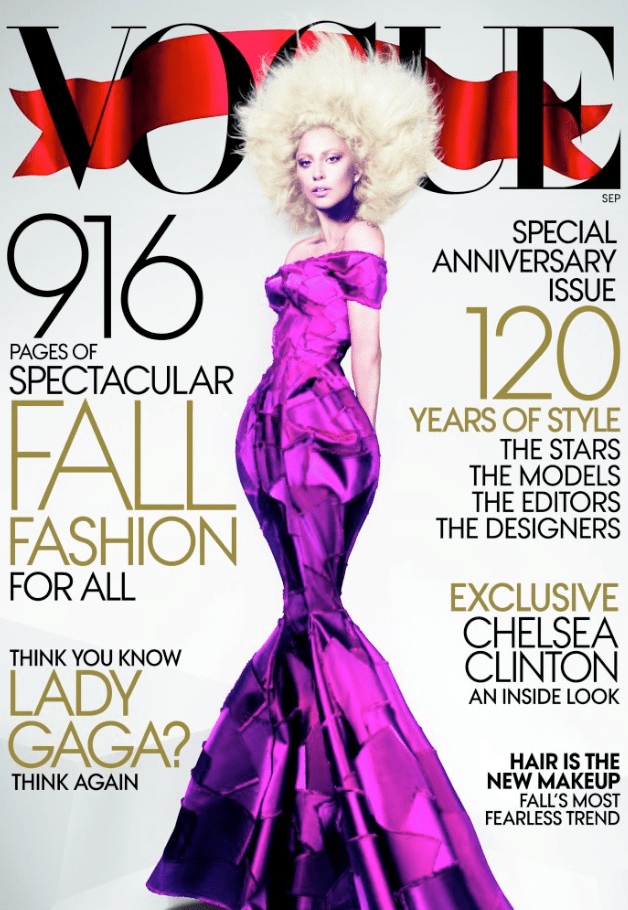 See, when you need to sell the September cinderblock..I mean issue (..that feels like a cinderblock), who better to appoint front-and-center than Lady Gaga? Because one thing is certain, Gaga’s face could be on napkins (which, it is) and little monsters across the globe will empty the shelves.