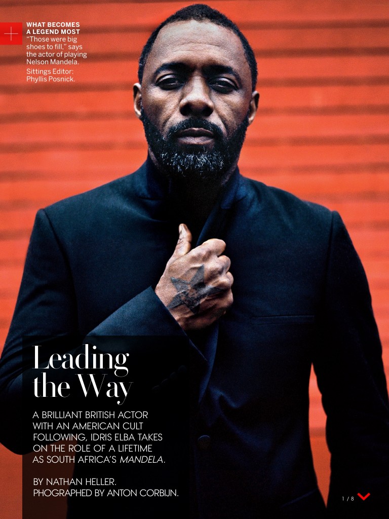 Another issue feature — also preparing for the upcoming award circuit — is British actor Idris Elba. Elba has had an American following for quite some time, with most recognizing him for his role as Stringer Bell on HBO’s The Wire. However, after a dominating portrayal of Nelson Mandela — in Mandela: Long Walk to Freedom — the London native has captured the attention of a much more global audience. Elba’s role of Mandela has earned him several nominations — including Golden Globe Best Actor — and though not yet announced, it is a given that that he will earn an Academy Award nomination, as well.